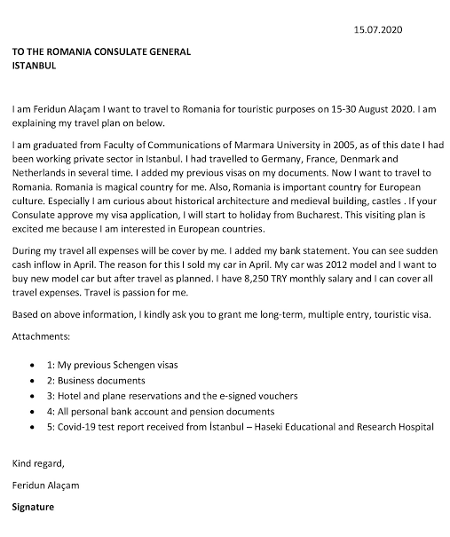• Romanya Turistik Vize Dilekçe Örneği